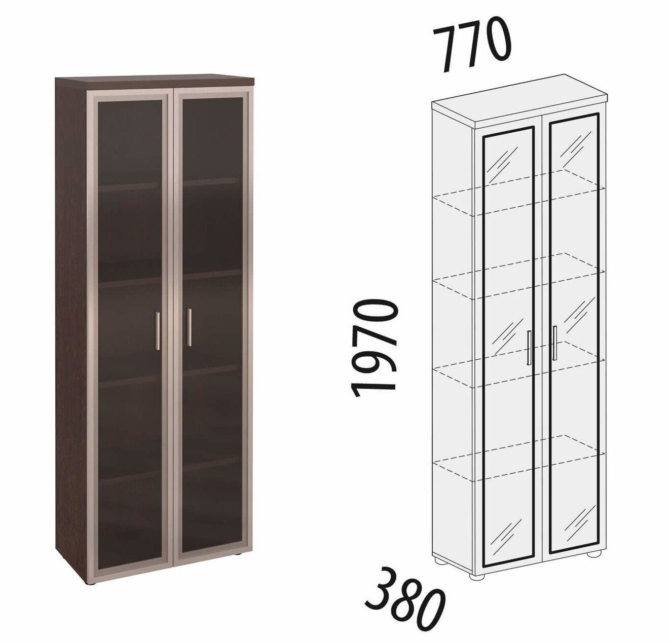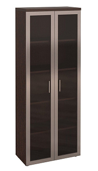Стеклянные дверцы позволяют увидеть все памятные призы и награды, не открывая дверцы шкафа. Регулируемые по высоте ножки позволяют установить модуль, скорректировав неровности пола. В изделии используются демпферы для мягкого закрывания дверок.